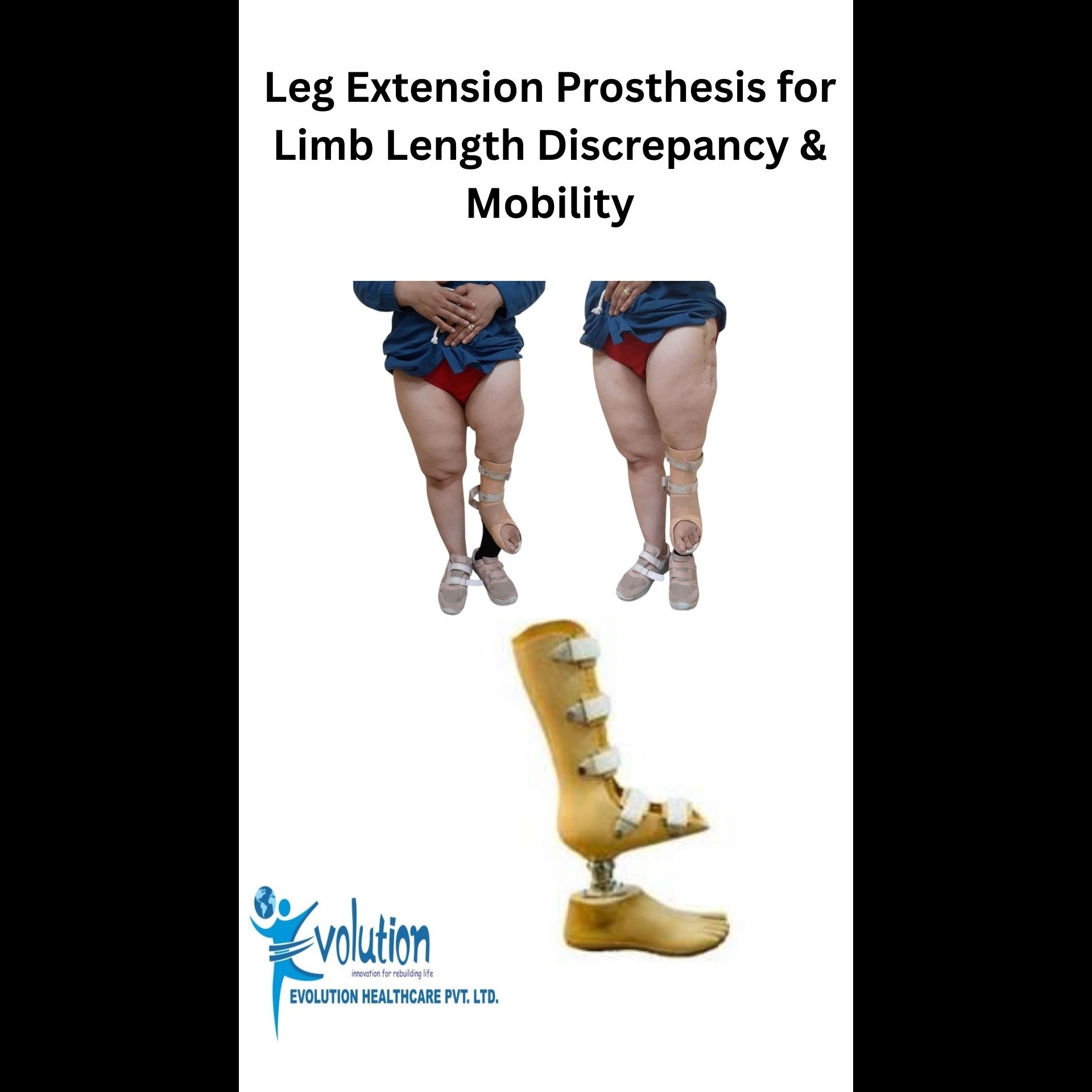 A leg extension prosthesis is a custom prosthetic limb extension designed to lengthen a shortened leg caused by congenital limb differences, limb loss, or leg length discrepancy (LLD). Unlike a full artificial leg, this prosthetic leg extension supports and stabilizes the existing limb to restore equal leg length, balance, and a natural walking gait.